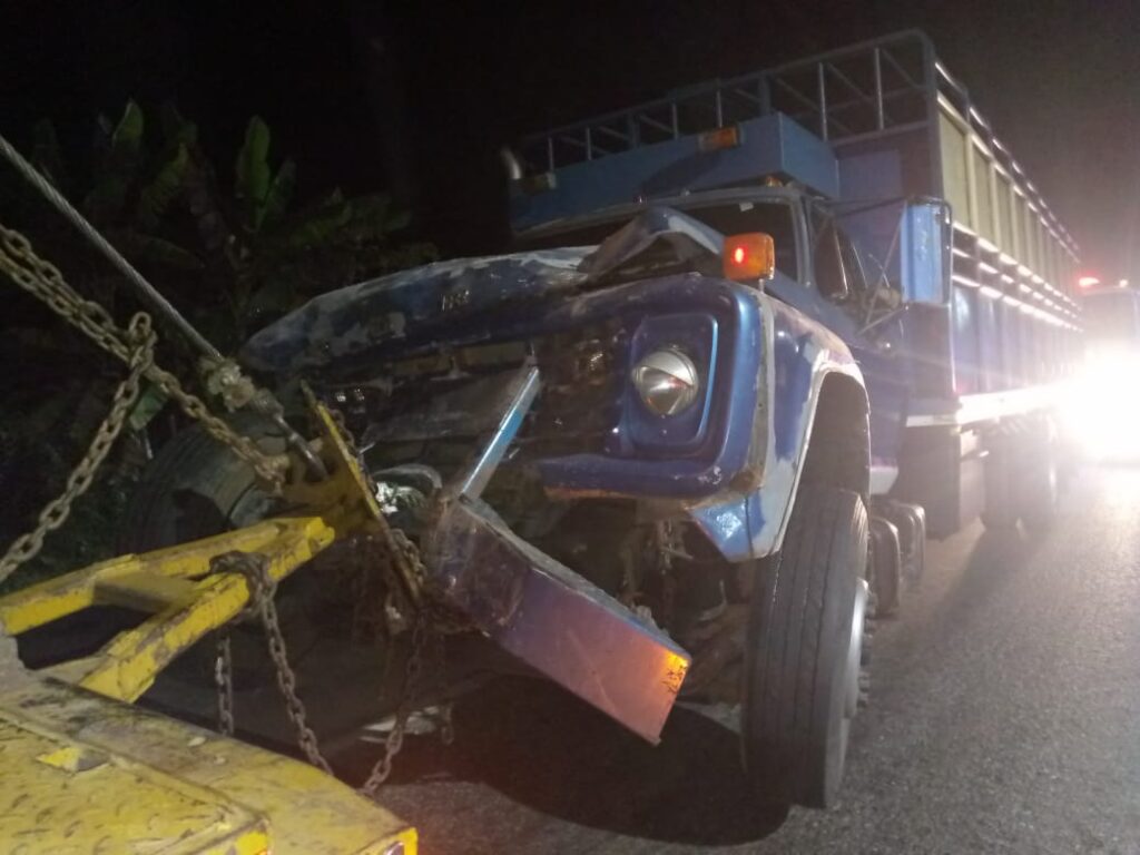 El primero de los choques se registró en horas de la madrugada de este sábado 20 de diciembre en el municipio Juan Germán Roscio Nieves cuando un camión con jaula ganadera impactó a otro de frente.