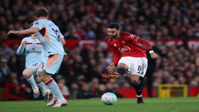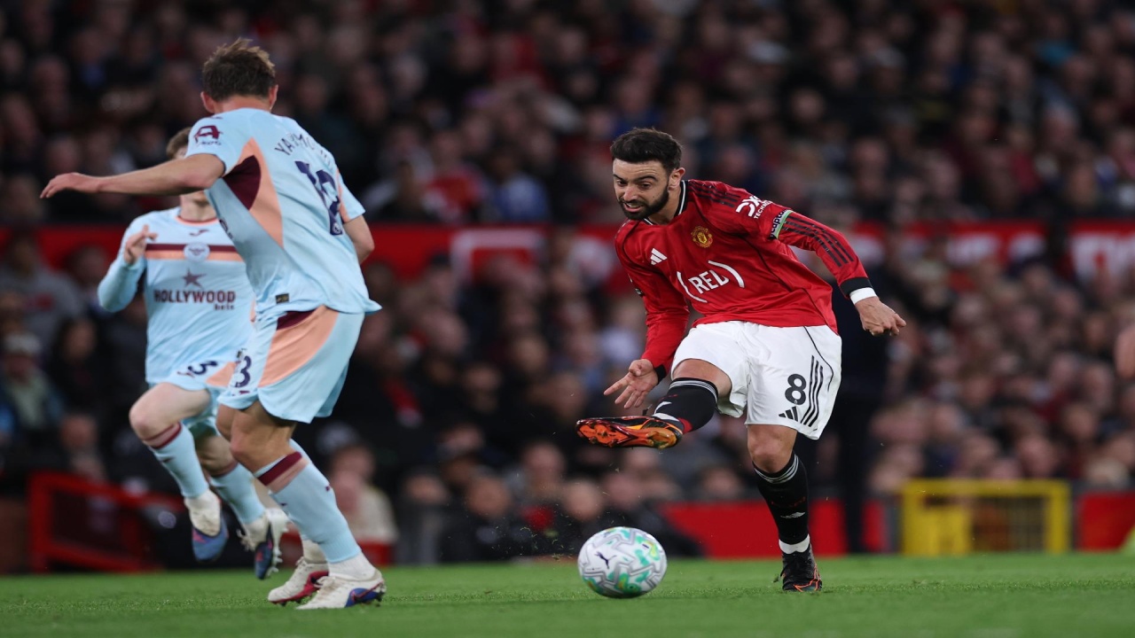 En una de esas ocasiones fallidas por el Brentford, el United engarzó una contra y Bruno corrió con veinte metros por delante y dos opciones, Mbeumo a un lado y Benjamin Sesko al otro.