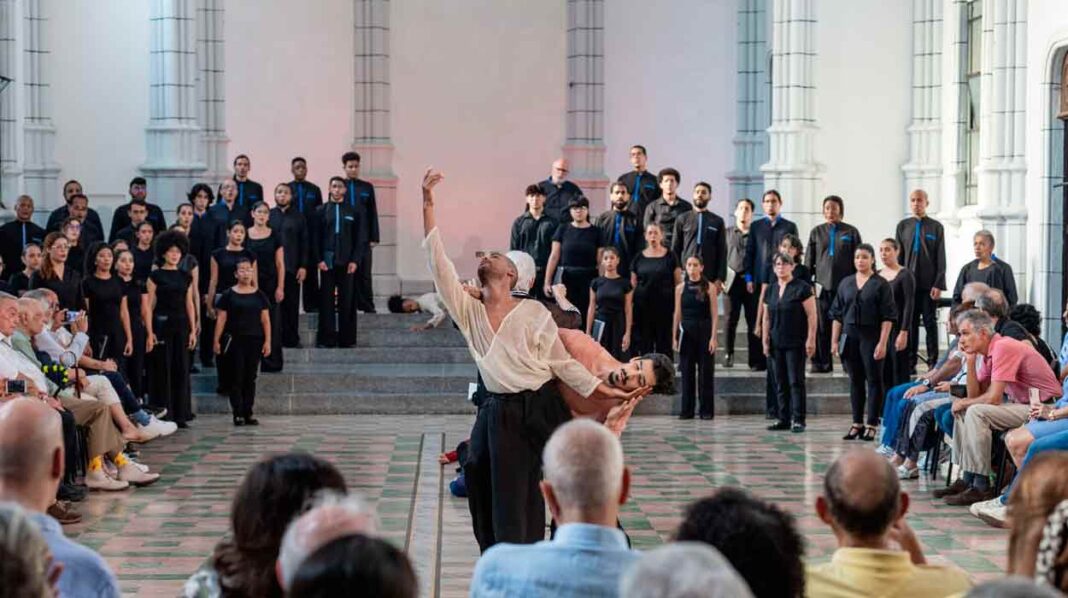 Más de sesenta artistas compartirán el escenario: la Schola Cantorum de Venezuela, un ensamble instrumental de la Orquesta Sinfónica Gran Mariscal de Ayacucho y la compañía de danza contemporánea Sieteocho, bajo la dirección musical de la maestra María Guinand y la puesta en escena de Armando Díaz.