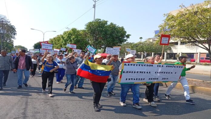 CARACAS.- Los profesionales afiliados a la Caja de Ahorro y Previsión Social de los Trabajadores del estado Anzoátegui protestaron este martes a las afueras del Palacio de Justicia de Barcelona para exigir la restitución de 120 viviendas que fueron invadidas en el conjunto residencia Castea Uno.