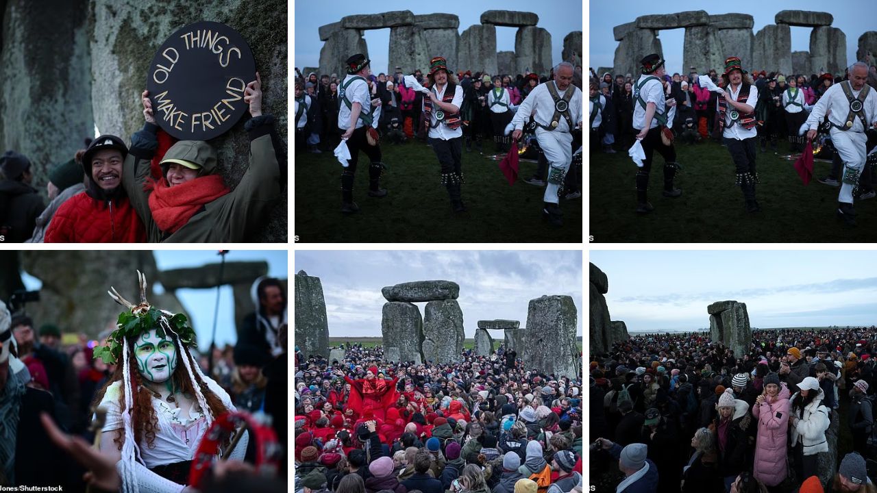 Poco antes de las 08:00 GMT el cielo empezó a despejarse, hasta que el sol hizo su entrada oficial nueve minutos más tarde, ante los vítores de la multitud -unos 8.500, según la BBC- que celebró la llegada del invierno con atuendos paganos y al son de cánticos y bailes ancestrales.